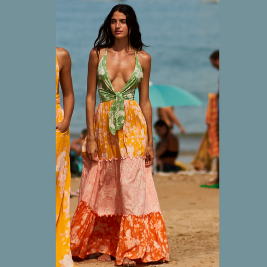 Dianora Smocked Tiered Maxi Dress in Green Majolica