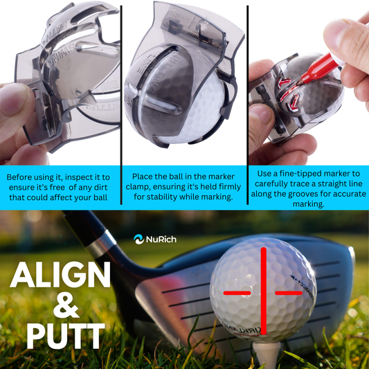 NuRich Golf Ball Line Marker Tool | Golf Ball Putting Alignment Marking Tool | Golf Accessories Tool | Fits in Golf Bag and Easy to Carry on Golf Course | 2 Pack
