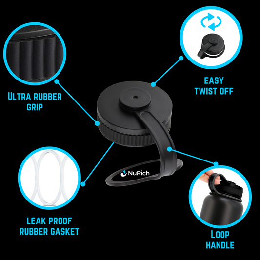 NuRich Standard Mouth Flex Cap for Hydro Flask, Water Bottle Replacement Lid for Hydroflask Bottles Black