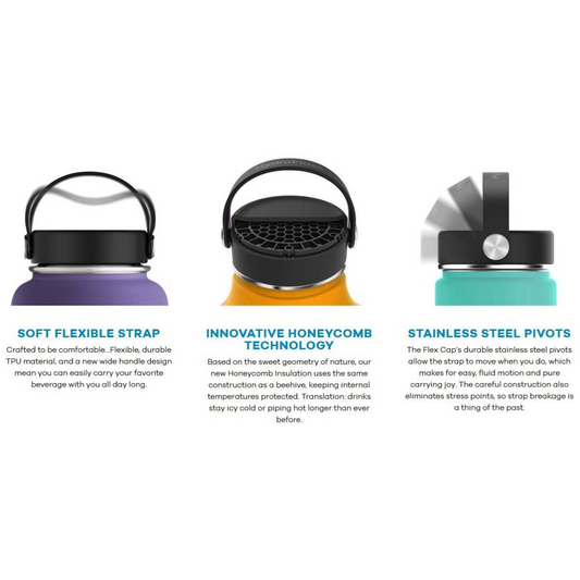 NuRich Hydro Wide Mouth Replacement Flex Cap Accessories Compatible Hydroflask, Nalgene, and Many More Top Water Bottle Brands Sizes 12 16 18 20 32 40 64 Ounce