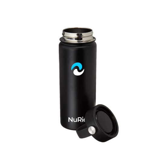 NuRich Sports Water Bottle - 18 oz, Stainless Steel Vacuum Insulated, Wide Mouth Hydro Metal with Sweat Proof Design for Hot and Cold Temperatures