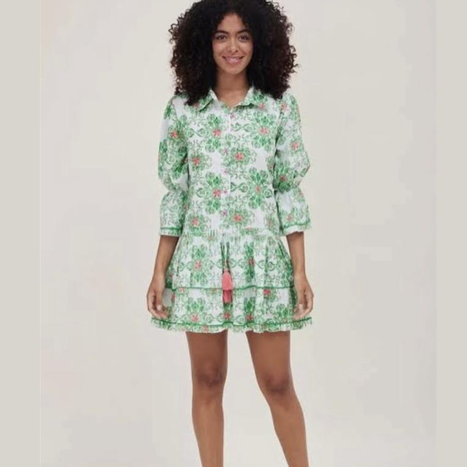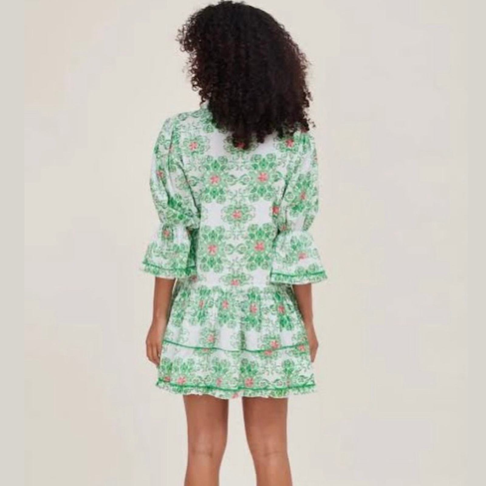Penelope Dropwaist Ruffle Sleeve Dress in Green Majolica