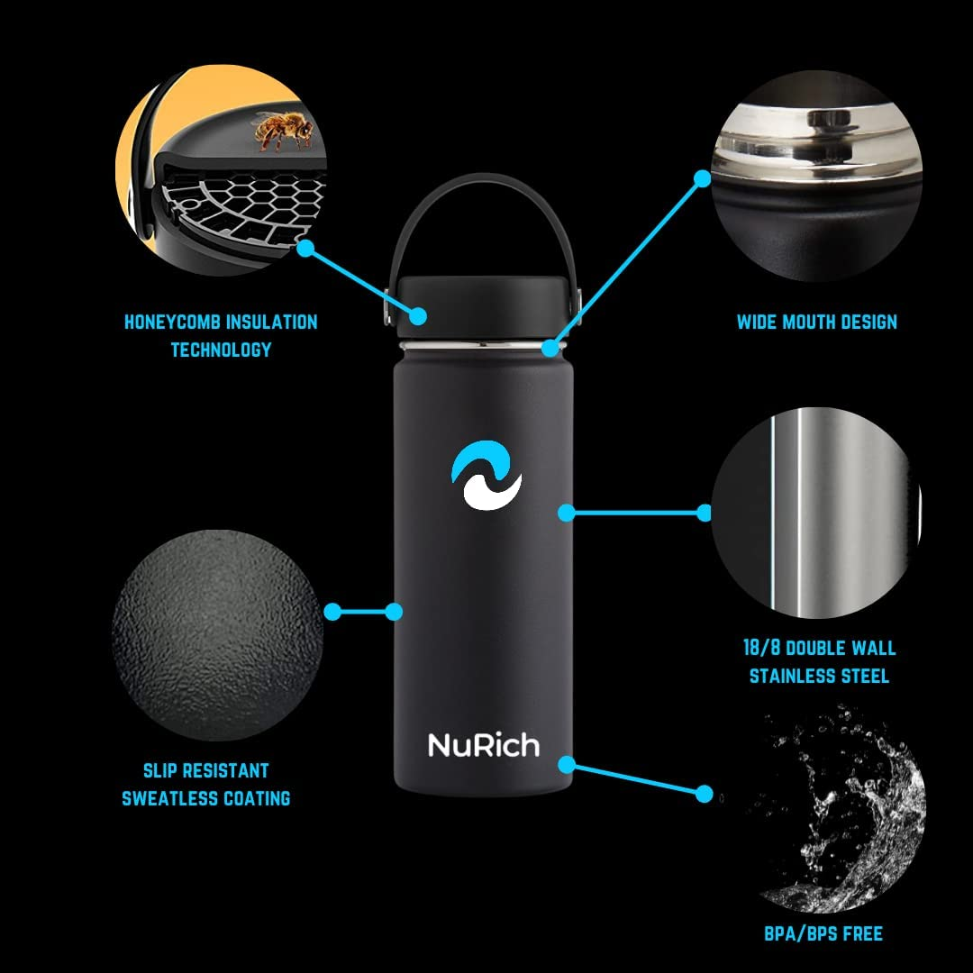 - š¬ The Original š¬ ā This water bottle is known as the trailblazer of all the other thermoflask out there. NuRich's BESTSELLING hydro water bottle known for promoting healthy human lifestyle changes from kids to adults and saving the environment by prevent plastic bottled products from entering our oceans.