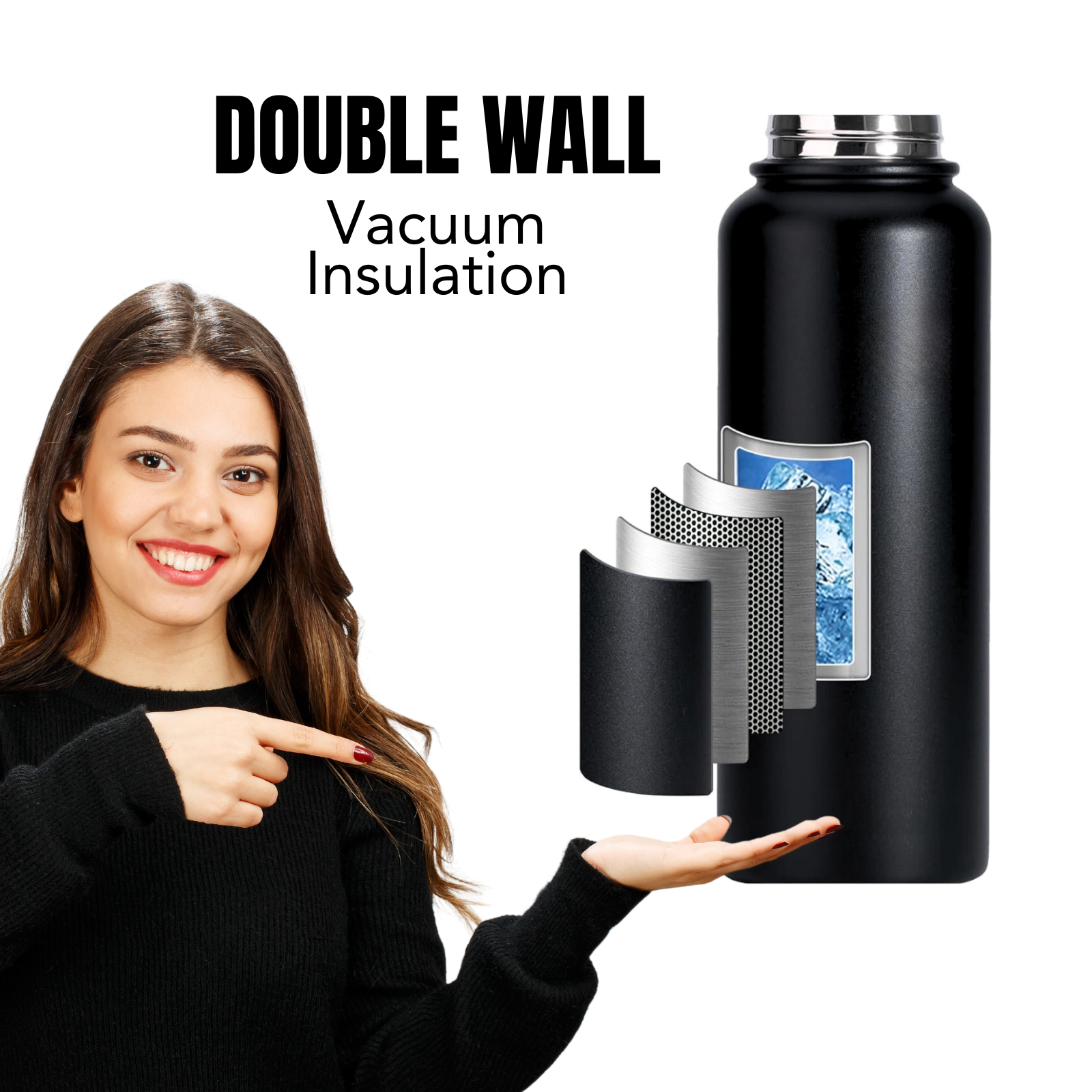 Sports Water Bottle - 32 Oz Insulated Stainless Steel Wide Mouth Gym Bottle with Straw Lid, Leak Proof Thermos for Mom, Women, Men & Kids