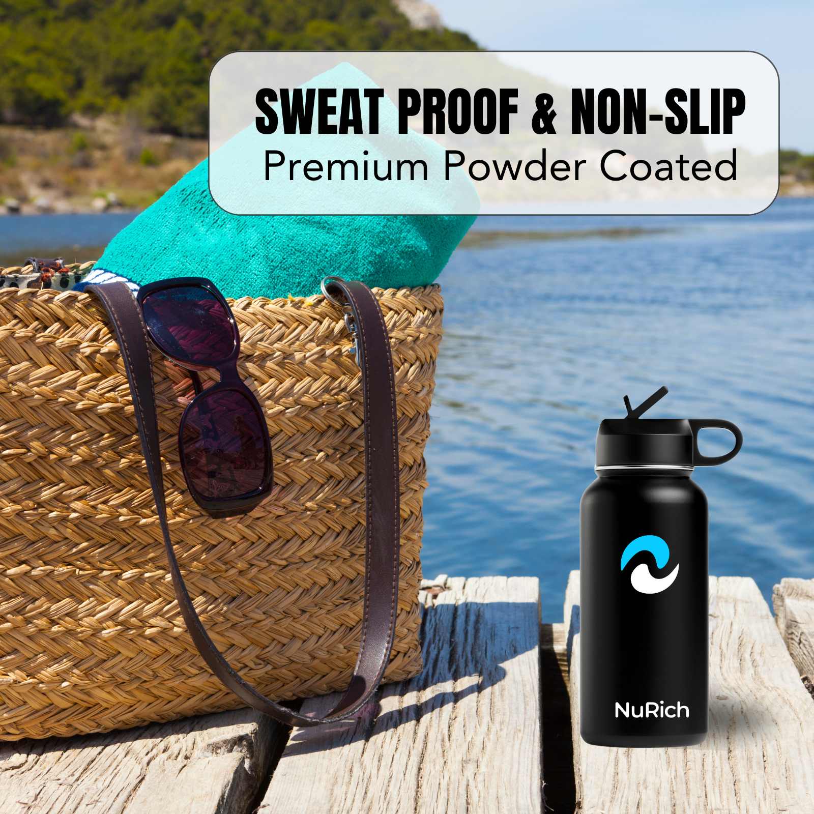 Introducing the NuRich Insulated Sports Water Bottle – your perfect hydration companion that helps save the oceans from plastic pollution. Crafted from premium 18/8 stainless steel, this 32 oz water bottle is 100% BPA-free and non-toxic, making it safe for you and the environment. Its double-wall insulation technology keeps drinks cold for up to 24 hours and hot for up to 12 hours, so you can enjoy your favorite beverage at the perfect temperature all day.